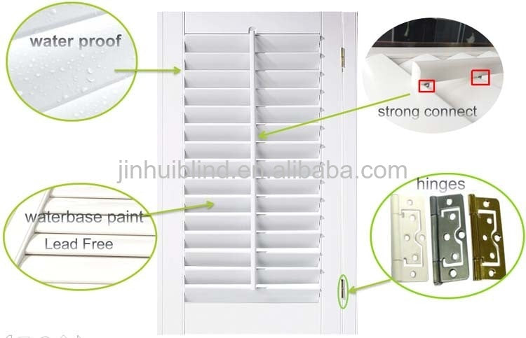 Product Description Custom High Quality PVC plantation shutter Material PVC with or without Aluinum core Louver/Blade Width 2-1/2" (64mm), 3-1/2" (89mm), 4-1/2" (115mm) Louver/Blade thickness 0.4374" (11mm), 0.4598" (12mm) Tolerance Width: +/-0.6mm, Thickness: +/-0.3mm Frame...