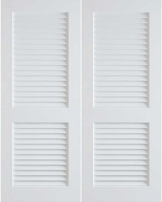 WDMA 48x96 Door (4ft by 8ft) Interior Swing Pine 96in Primed Plantation Louvers Double Door | 784 for Canada