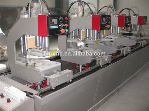 welding machine for pvc window / pvc plastic window welding machine: Factory supply pvc plastic window welding machine: Detail Specifications of pvc plastic window welding machine: Model pvc plastic window welding machine Main Feature SHJ02-120*4500 1.Used for welding pvc profile. Four Head has more high efficiency. 2.PLC control, pneumatic drive, simple operation, stable capability.      3.Weld four-point ,three-point, two point, single point, transom, cross -trans om and special angle.  4.Four heads can work simultaneously and individually. 5.This machine is made up of machine heads, frame, electric  controller box, profile-holding frame, etc. Model SHJ02-120*3500 Working air pressure 0.4~0.6MPa Air consumption 150 L/min Input Voltage 220V/ 50 Hz Input Power 2.5 KW Welding height 20~120 mm...