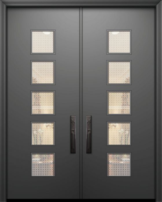 WDMA 64x96 Door (5ft4in by 8ft) Exterior Smooth 96in Double Venice Solid Contemporary Door w/Metal Grid for Canada