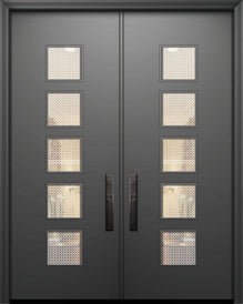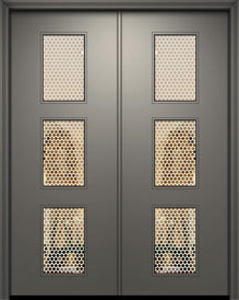 WDMA 64x96 Door (5ft4in by 8ft) Exterior Mahogany 96in Double Venice Solid Contemporary Door w/Metal Grid Attributes Table