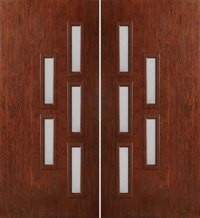 WDMA 60x80 Door (5ft by 6ft8in) Exterior Cherry Contemporary Modern 5 Lite Double Entry Door FC553 for Canada