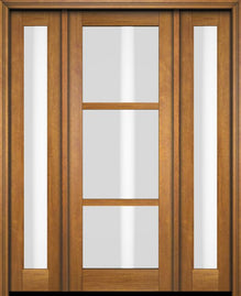 WDMA 52x96 Door (4ft4in by 8ft) Exterior Swing Mahogany Modern 3 Lite Shaker Single Entry Door Sidelights