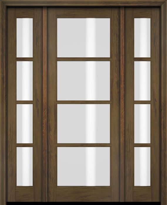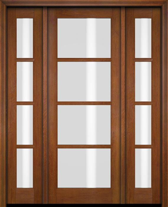 WDMA 52x96 Door (4ft4in by 8ft) Exterior Swing Mahogany 4 Lite TDL Single Entry Door Sidelights