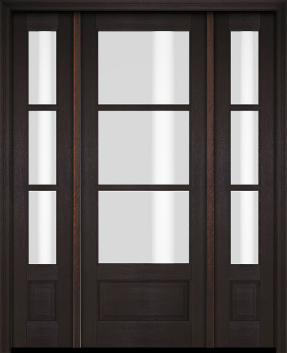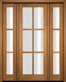 WDMA 52x96 Door (4ft4in by 8ft) Exterior Swing Mahogany 3/4 3 Lite TDL Single Entry Door Sidelights