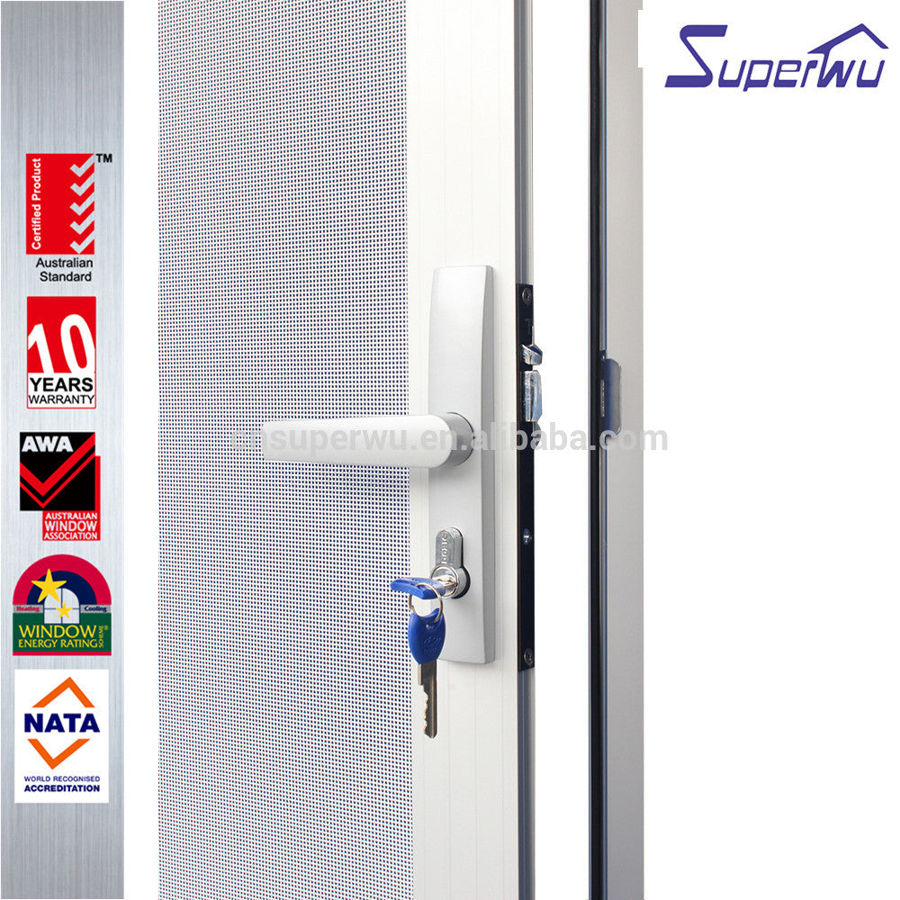 Silvery aluminum stainless steel mesh hinged door as security door Product Description Click for more informations!!! Features l SP86 SP100 SP130 SP150 series available for housing,residential,commercial and luxury villa l Grill and fly screen available l Flyscreen with taking off easily and cleaning l With timber reveal, easy installation l Fin flat angle for double...