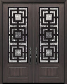 WDMA 64x96 Door (5ft4in by 8ft) Exterior Cherry 96in Double 1 Panel 3/4 Lite Eclectic Steel Grille Door