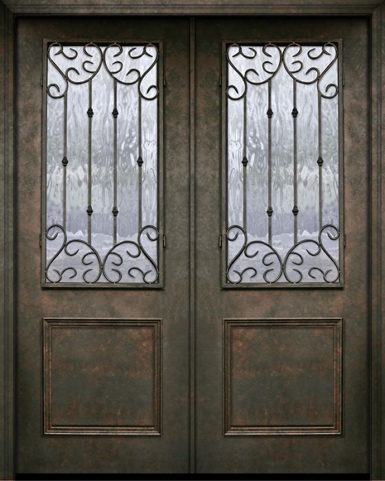 WDMA 64x96 Door (5ft4in by 8ft) Exterior 96in ThermaPlus Steel Valencia 1 Panel 2/3 Lite Double Door