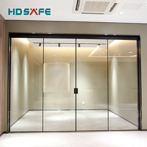 customized tempered glass soft closing black metal narrow frame synchronized sliding door on China WDMA