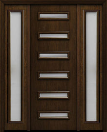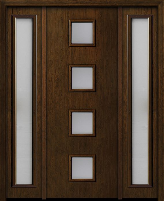 WDMA 54x96 Door (4ft6in by 8ft) Exterior Cherry 96in Contemporary Four Square Lite Single Fiberglass Entry Door Sidelights