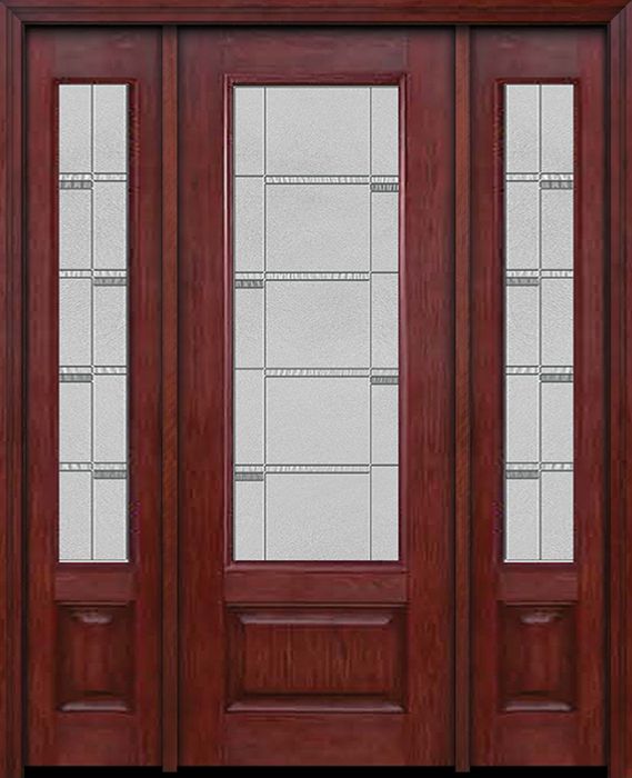 WDMA 54x96 Door (4ft6in by 8ft) Exterior Cherry 96in 3/4 Lite Single Entry Door Sidelights Crosswalk Glass