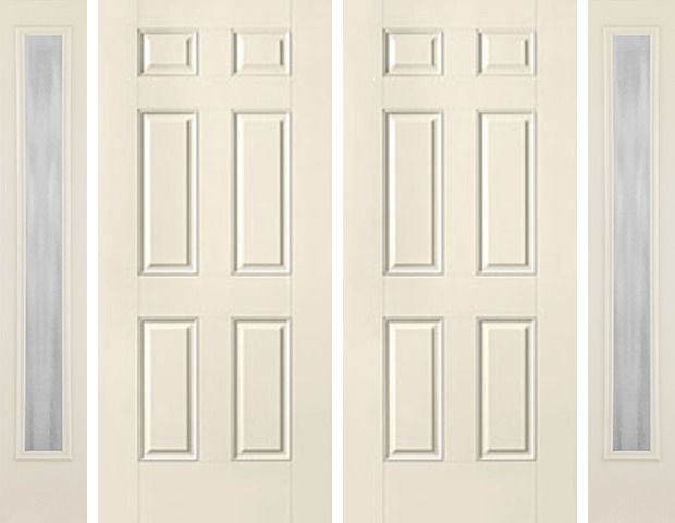 WDMA 80x80 Door (6ft8in by 6ft8in) Exterior Smooth 6 Panel Star Double Door 2 Sides Chinchilla Full Lite Sidelight Flush Attributes Table
