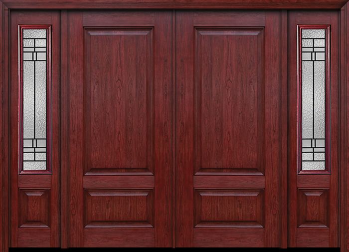 WDMA 88x80 Door (7ft4in by 6ft8in) Exterior Cherry Two Panel Double Entry Door Sidelights Pembrook Glass